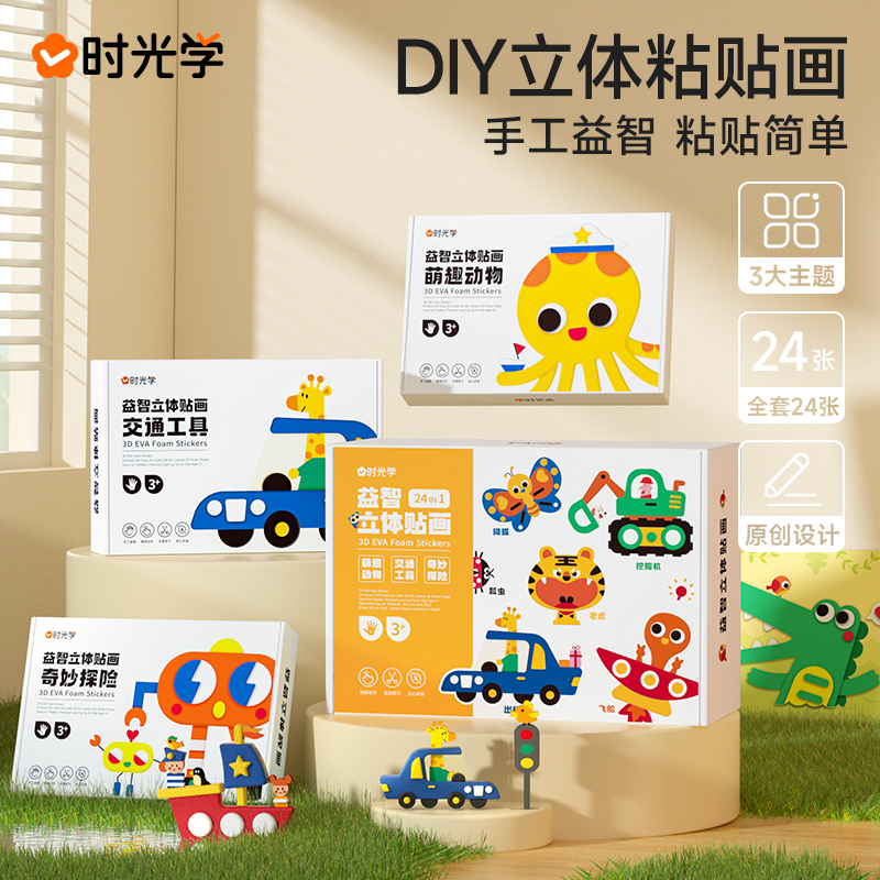 儿童手工益智DIY立体粘贴画激发孩子粘贴画益智男女孩贴纸玩具七大潜能全脑开发幼儿园制作材料包eva 时光学