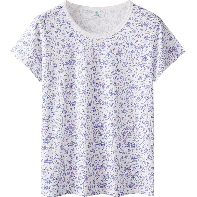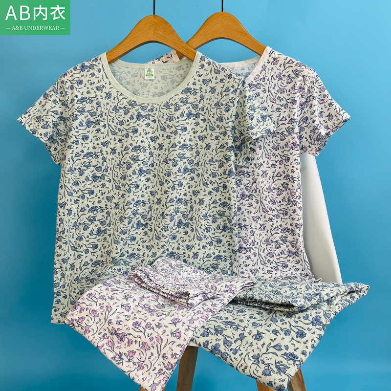 透气印花家居上衣 妈妈中老年睡衣全棉宽松大码 AB女士纯棉短袖 夏季