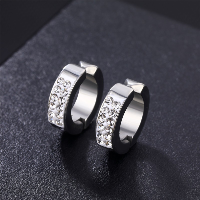 轻奢钛钢闪钻耳环男士 简约高颜值耳扣闪钻耳夹无耳洞 单只潮流个性