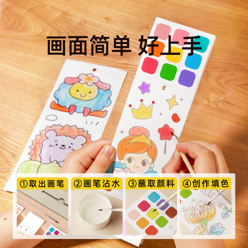美乐童年水彩涂色便签儿童水画本幼儿园便携图画本水彩礼物 包邮