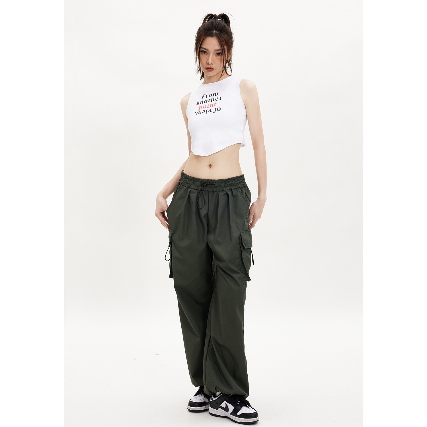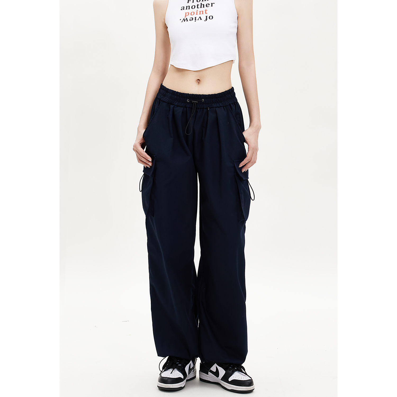 子大口袋宽松直筒束脚运动裤 Beikastudios美式 女春秋黑色裤 裤 工装