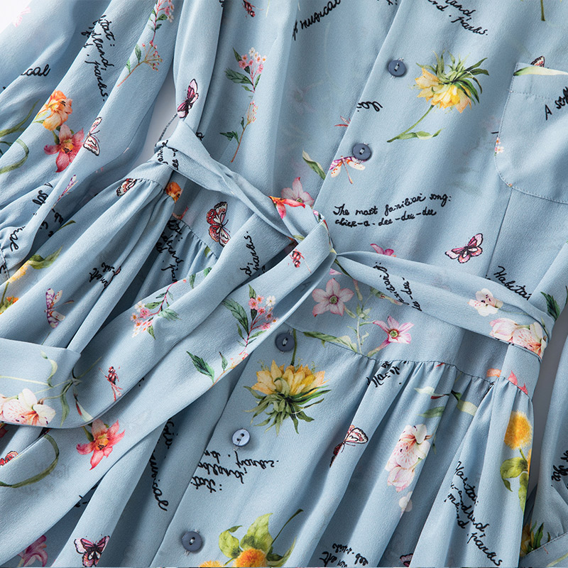 腰部系带花卉连衣裙长袖 HM女装 法式 新款 裙1265601 连衣裙2025秋季
