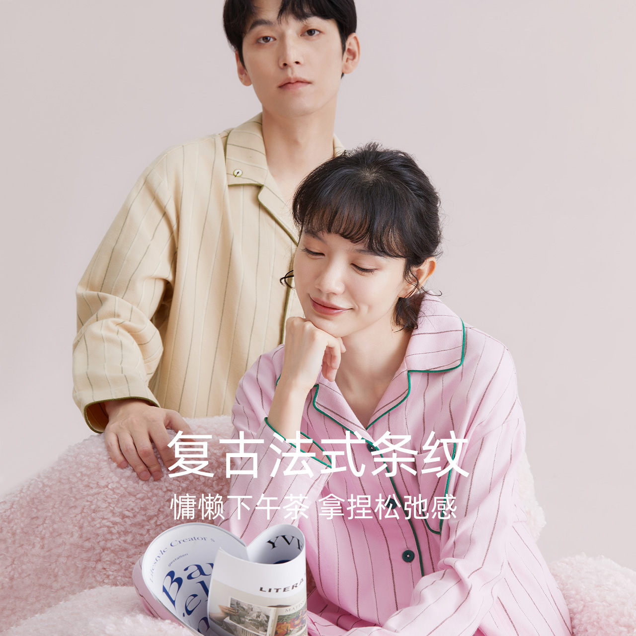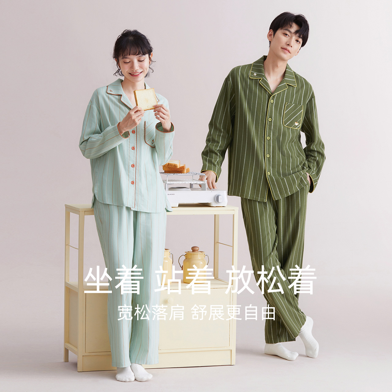 中厚长袖 情侣纯棉磨毛睡衣男女士秋冬季 家居服套装 柔柔棉
