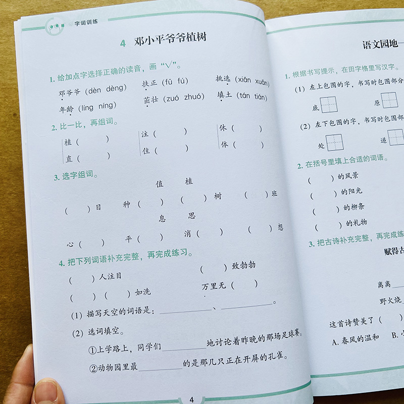新版 小学2年级下学期看拼音写词语生字注音多音字形近字默写 小学生二年级下册语文生字组词语近义词反义词字词同步训练部编人教版