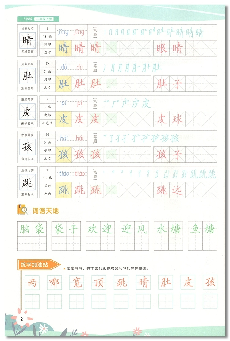 邹慕白字帖一手好字小学语文二年级上册2年级上册全新升级语文课本同步描摹字帖小学语文同步临摹字帖直接写左右翻58页吉林