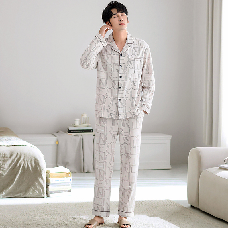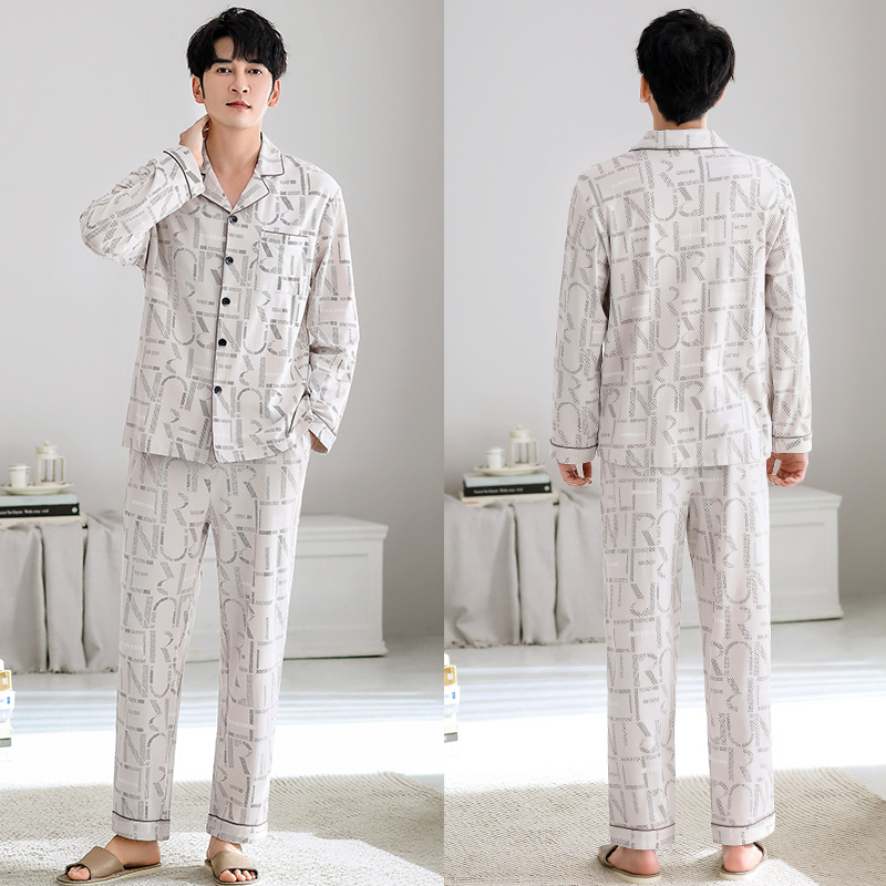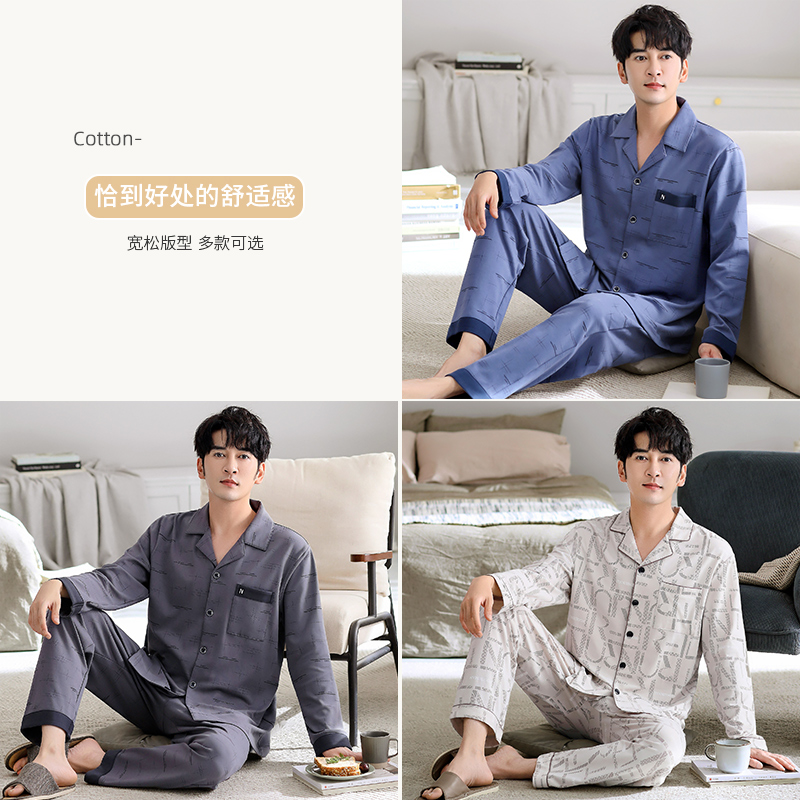 大码 棉长袖 开衫 式 莫代尔睡衣男士 2025新中年爸爸家居服套装 春秋款