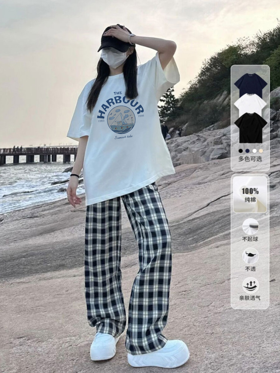 t恤2025新款 女装 夏季 洋气大码 上衣 欧货气质时尚 黑色甜酷纯棉短袖