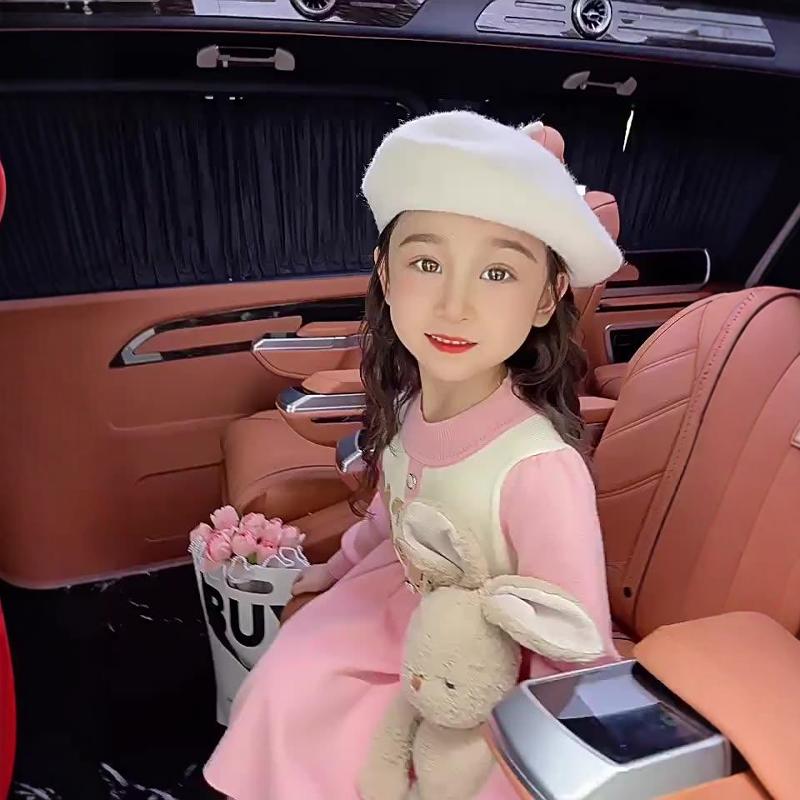 女针织毛衣裙 穿搭新款 阔色藏蓝色假两件拼接长袖 连衣裙2025秋冬季