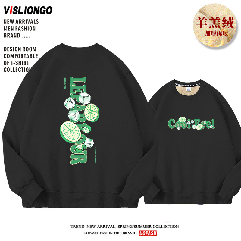 打底衫 长袖 港风外套圆领上衣服男生美式 潮牌宽松无帽卫衣男春秋季