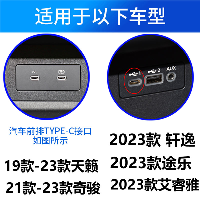 适用2023新款 C转USB转接头天籁车载充电转换器 东风日产轩逸Type
