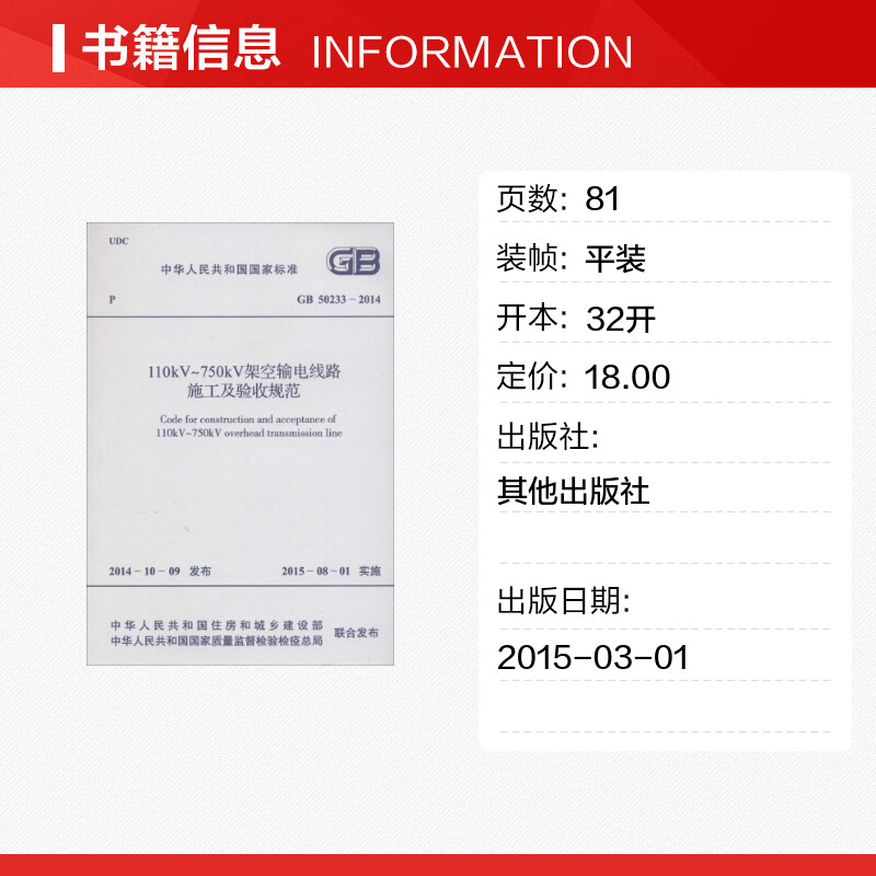 中华人民共和国国家标准110kV~750kV架空输电线路施工及验收规范GB50233 2014
