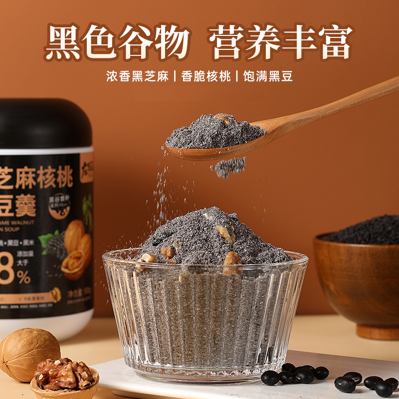 黑芝麻糊核桃黑豆粉五谷杂粮营养早餐代餐五黑薏米奇亚籽