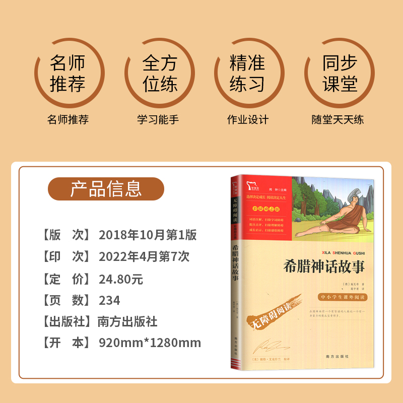 阅读书目中小学生课外阅读积累教辅书籍南方出版 小学4年级上册语文教材推荐 社海门发货 彩插励志版 2024秋四年级上好书希腊神话故事