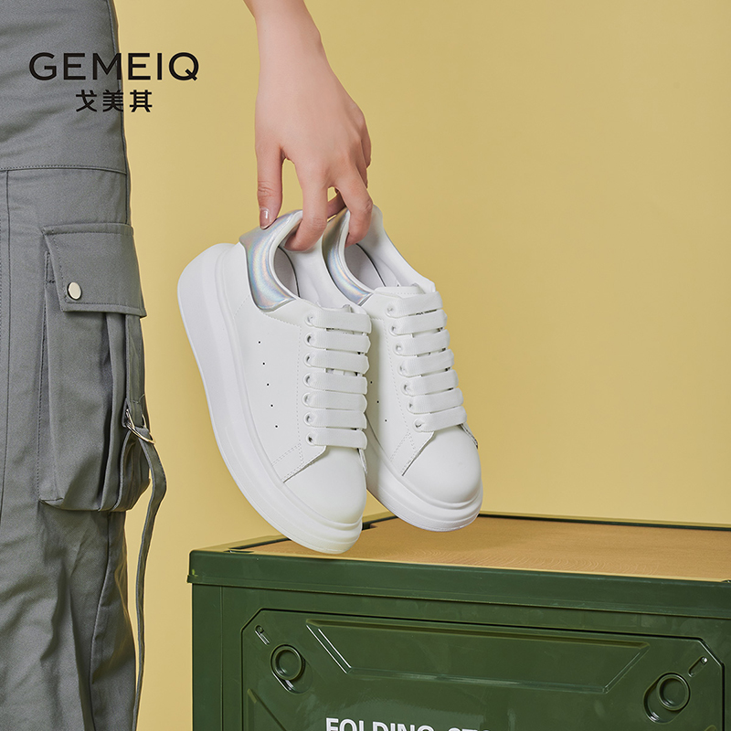 单鞋 戈美其真皮小白鞋 百搭松糕厚底内增高透气板鞋 新款 女春季
