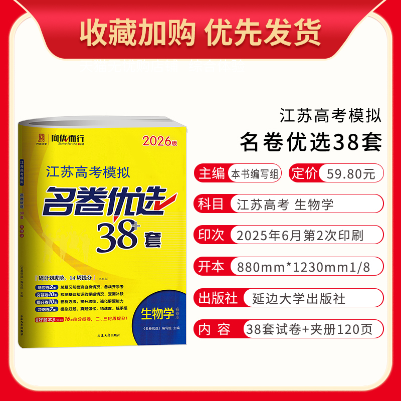 2026版 高三一二轮复习资料书试题精选汇编历年真题测试卷高三总复习真题考前冲刺训练高中必刷题 江苏高考模拟名卷优选28套生物学