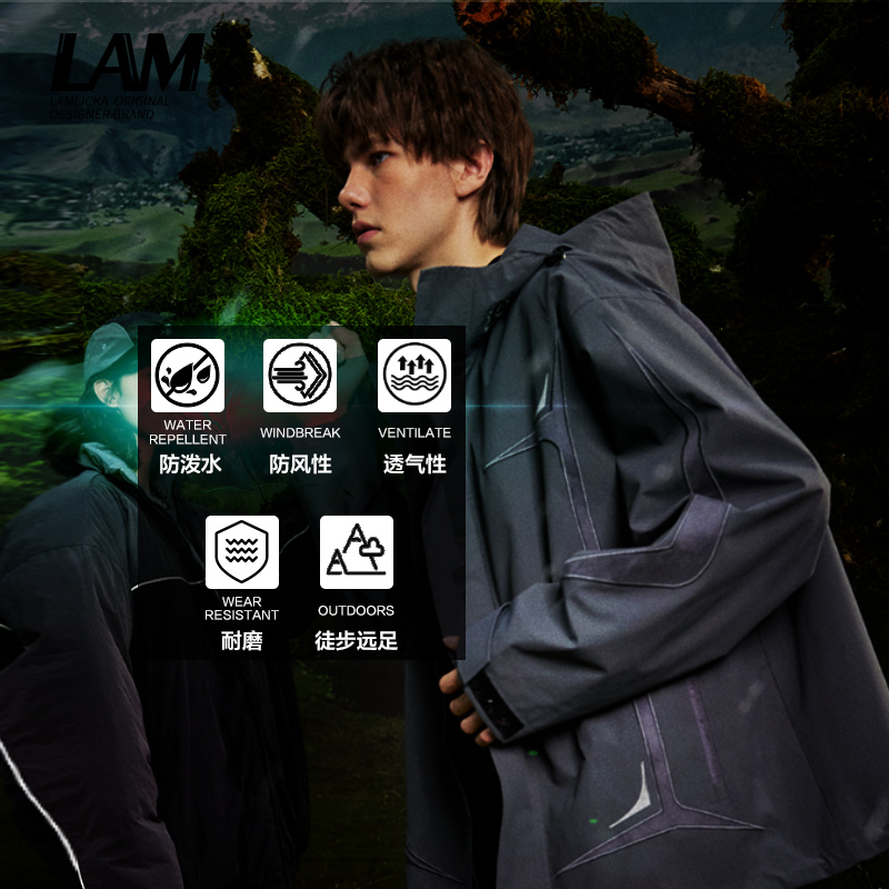 LAMLICKA 外套 LAM户外山系防风防水登山服连帽风衣夹克男女秋季