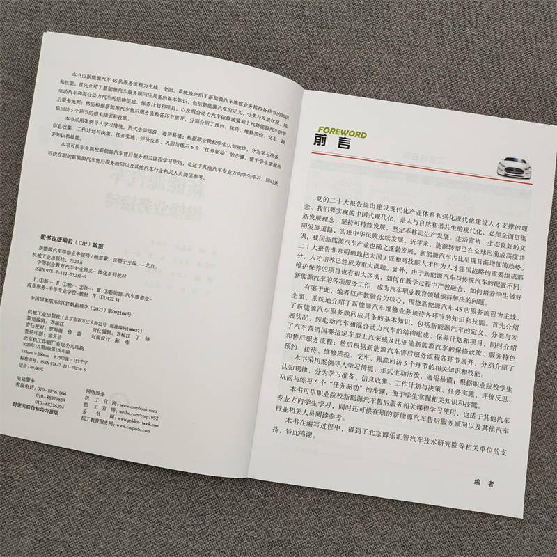 赖慧豪 机械工业出版 张樱子 9787111732389 社 中等职业教育汽车专业理实一体化系列教材书籍 新能源汽车维修业务接待