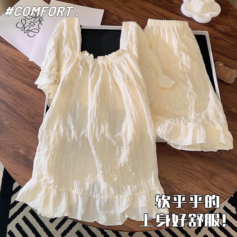 蝴蝶结温柔风少女梭织棉家居服套装 短袖 天2025新款 奶呼呼睡衣夏季