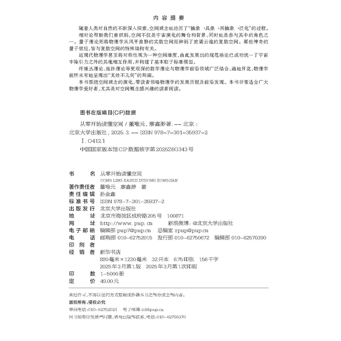 社 从零开始读懂空间 北京大学出版 廖鑫渺 9787301359372 董唯元