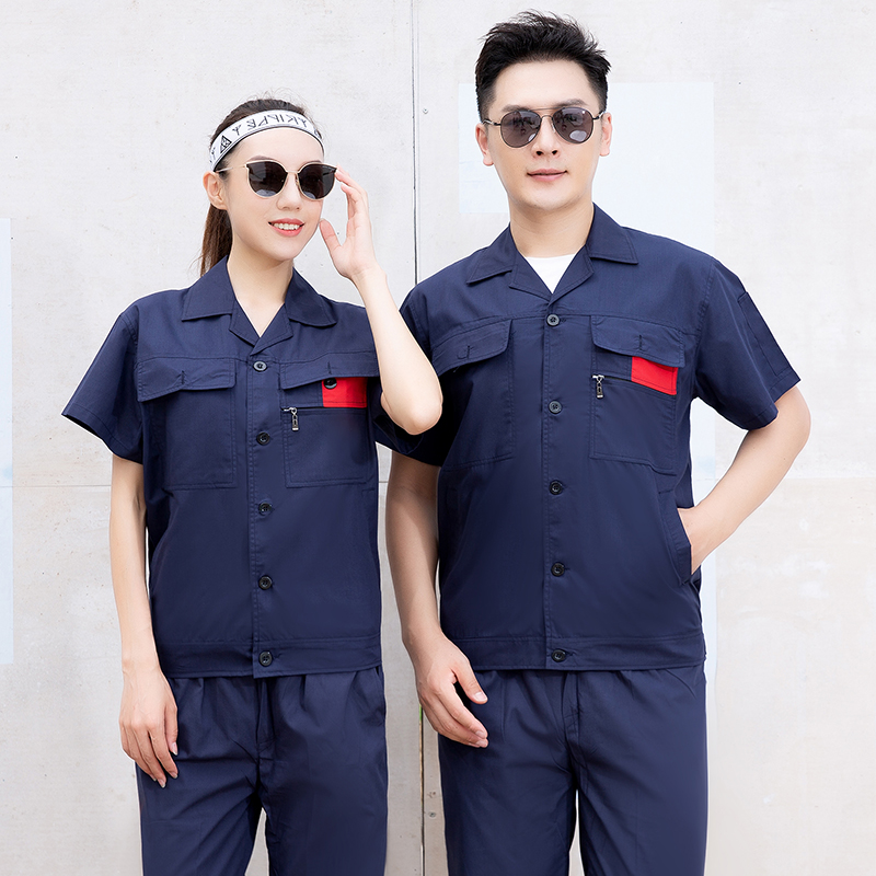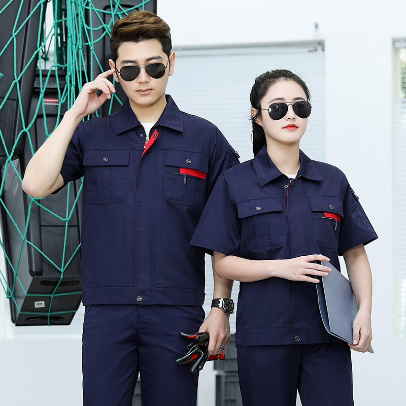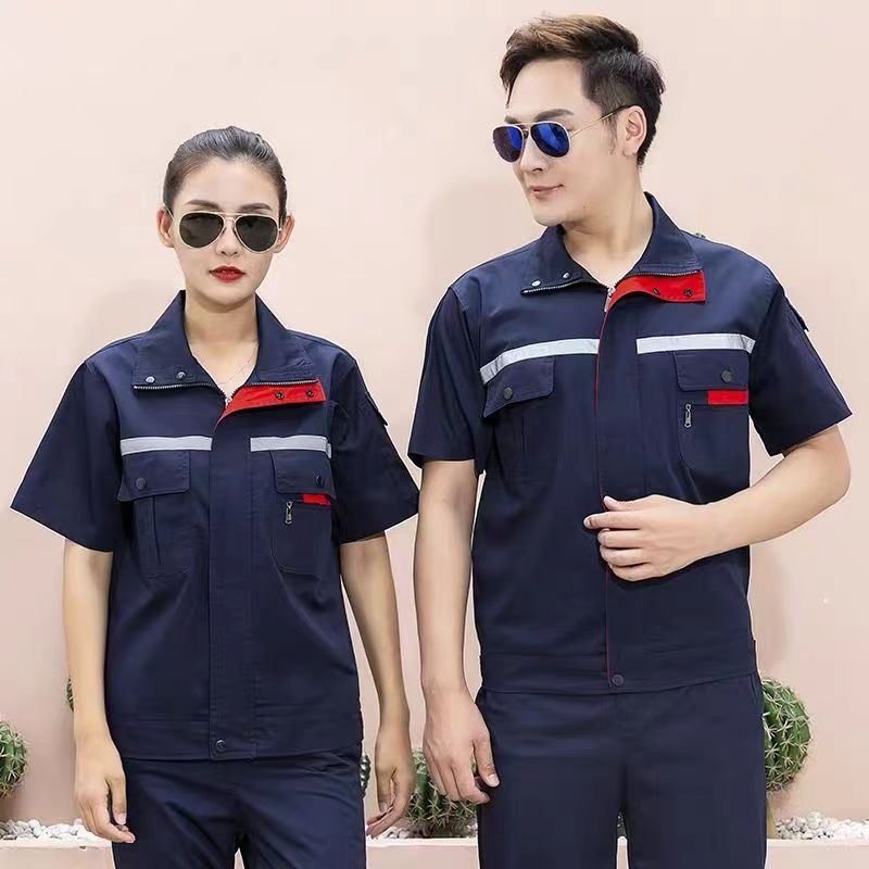 耐磨反光条工装 夏季 男薄款 工作服套装 厂服车间汽修劳保服上衣 短袖