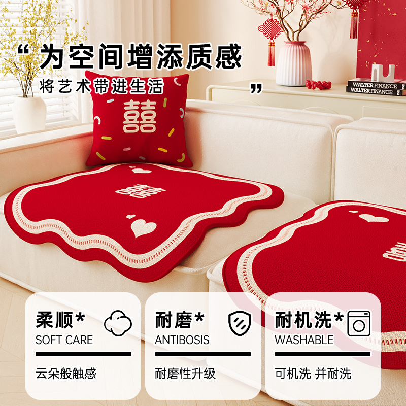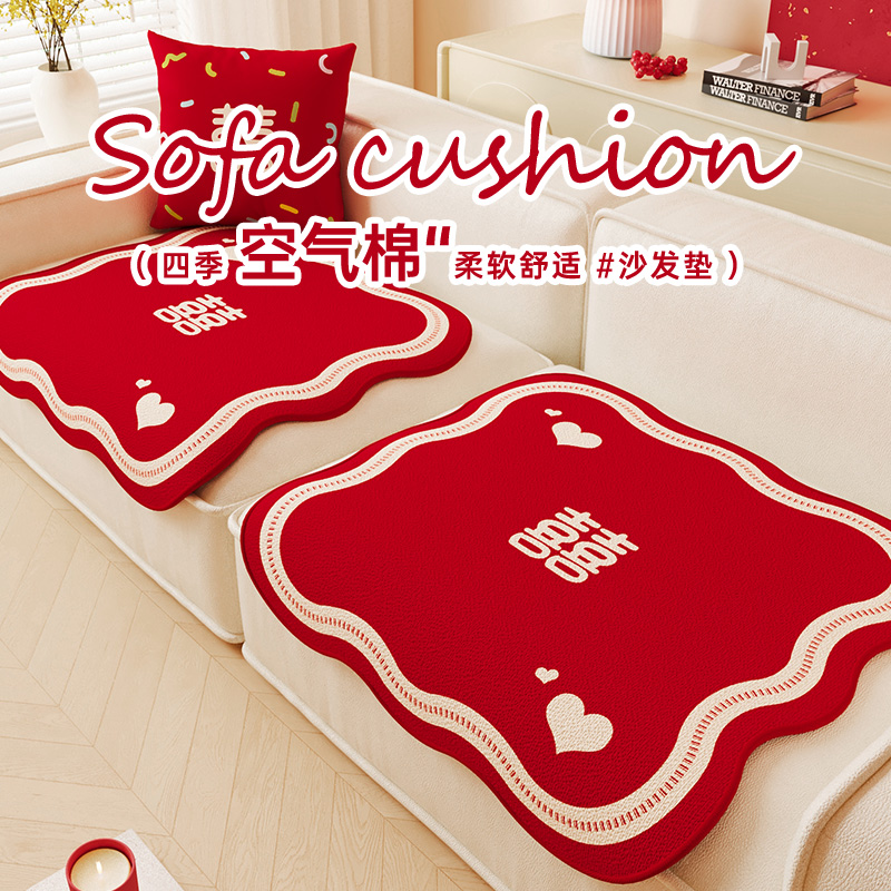 喜庆红色直排沙发坐垫 结婚单人椅垫2025年新款 分体式 沙发垫分片式