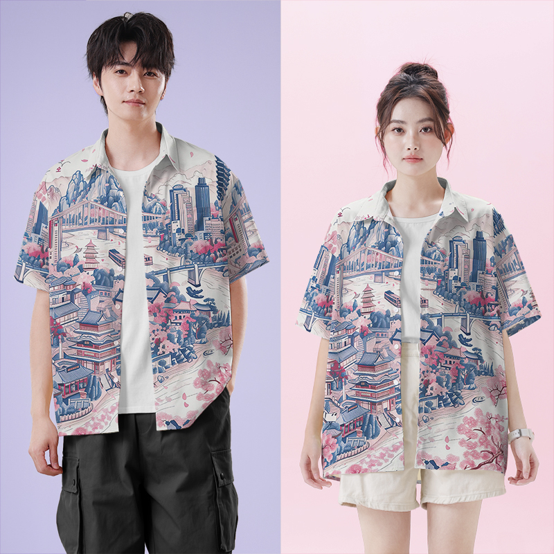 短袖 创意印花花衬衣设 衬衫 女装 无界 男装 春天重庆地区信息图大码