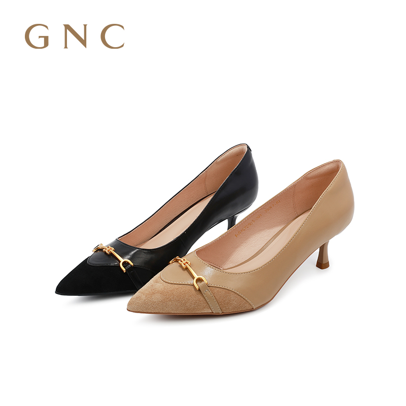 拼接真皮职业通勤鞋 GNC气质法式 细跟浅口单鞋 2025新款 尖头高跟鞋