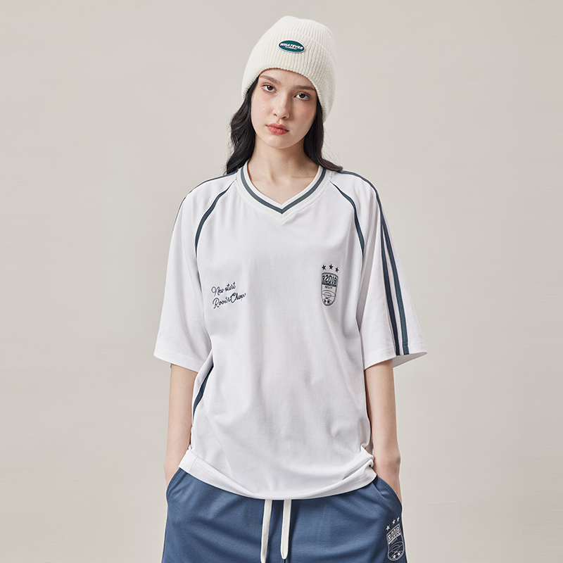 白色宽松7A抑菌速干V领球衣半袖 新款 潮 T恤男2025夏季 公鸡冠军短袖