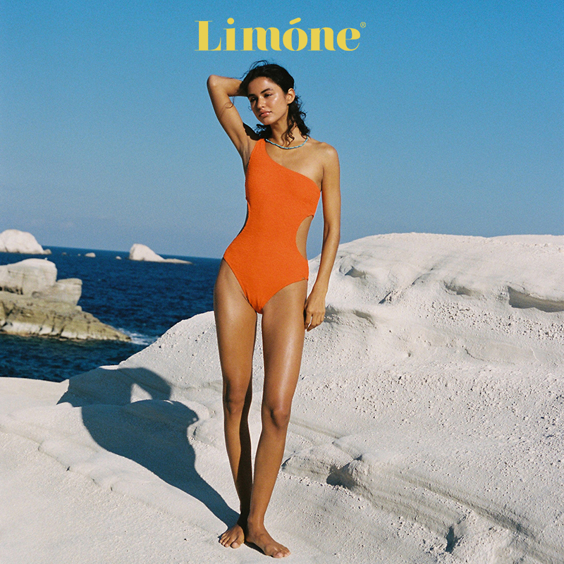 高级橘色连体泳衣绝美泳装 Limone2025新款 海边度假 向涵之同款