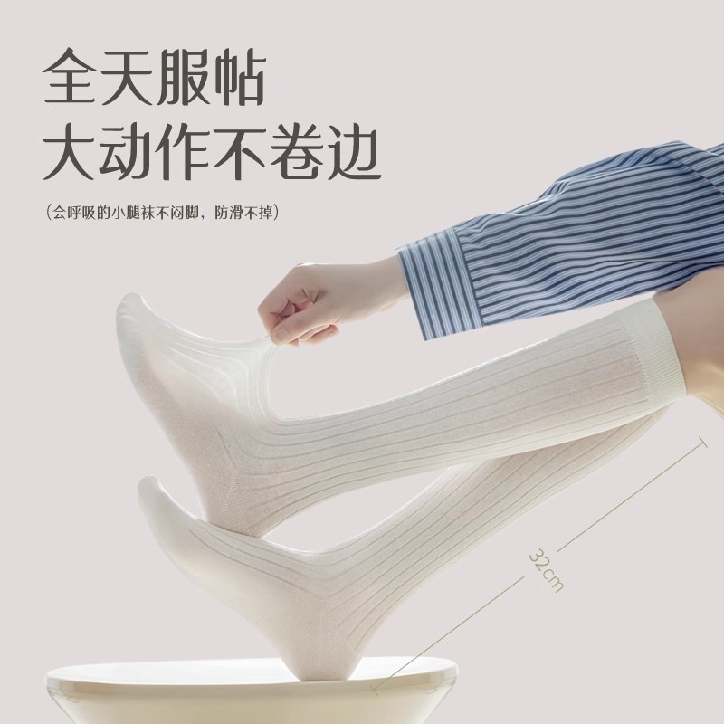 薄款 黑色袜子女中筒袜春秋季 堆堆长筒过膝袜jk压力瘦腿小腿袜夏季