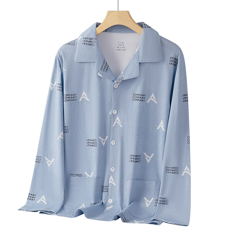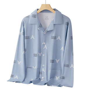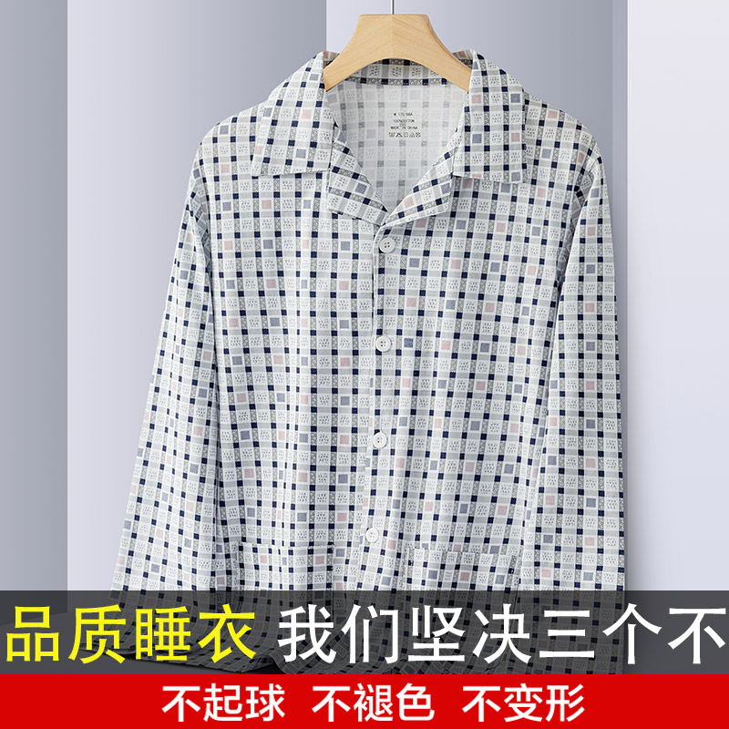 休闲家居服宽松大码 申本2025新款 纯棉长袖 睡衣春夏外穿款 上衣 男士