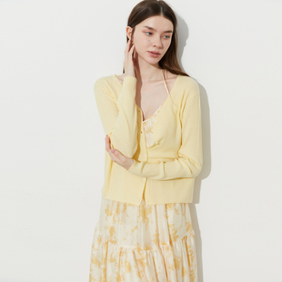 100羊毛多巴胺开衫 鹅黄色针织衫 薄外套上衣披肩 新款 DPLAY2025夏季