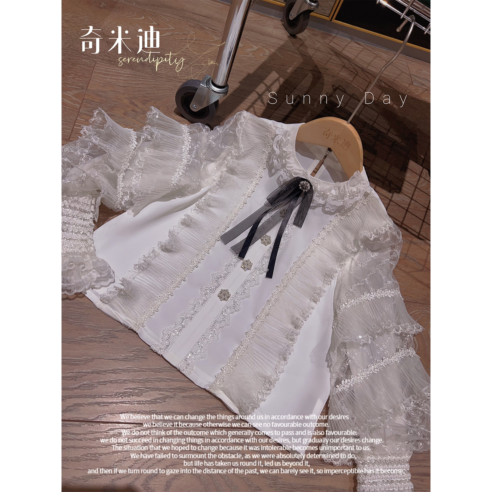奇米迪女童春秋新款 儿童洋气白色百搭上衣 蕾丝花边衬衫