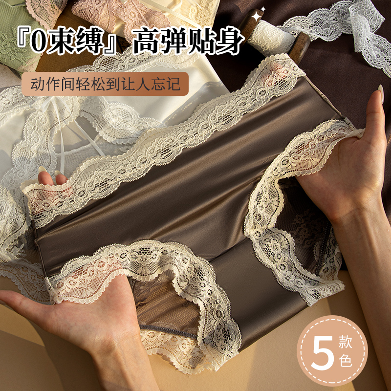 女士抗菌裆缎面镂空网纱性感纯欲少女三角短裤 俞兆林法式 蕾丝内裤