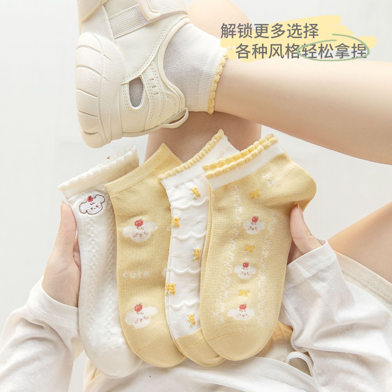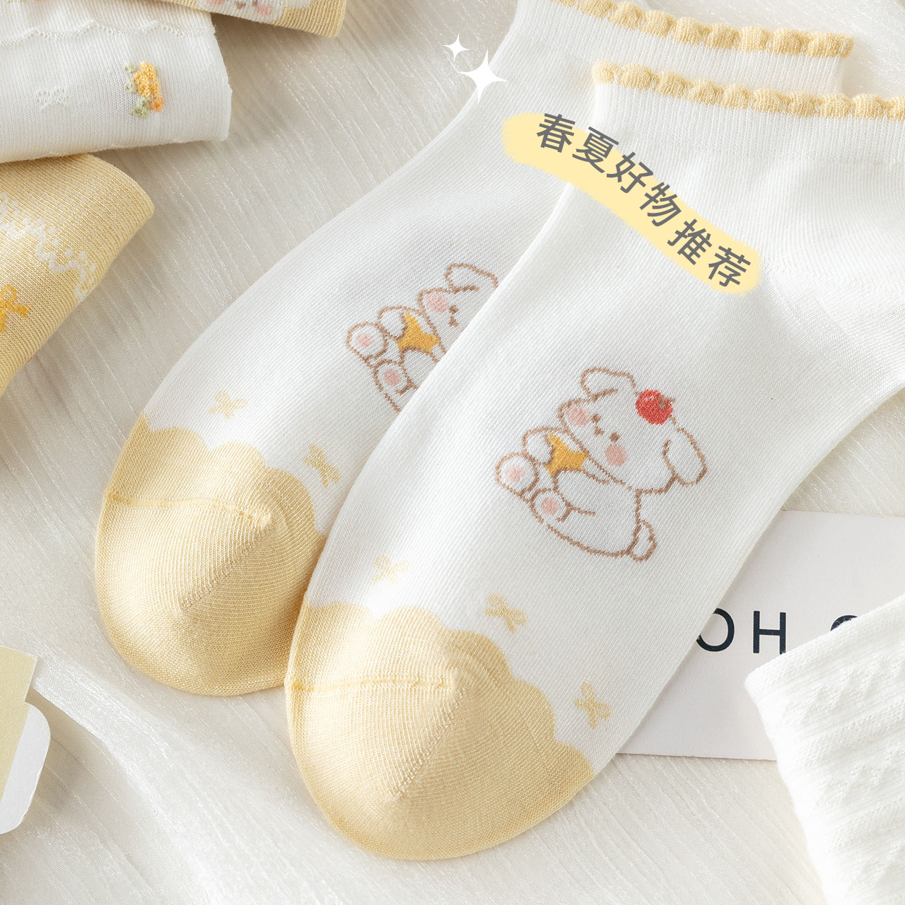 caramella袜子女春夏2025新款 透气女生短袜棉袜 船袜女袜可爱薄款