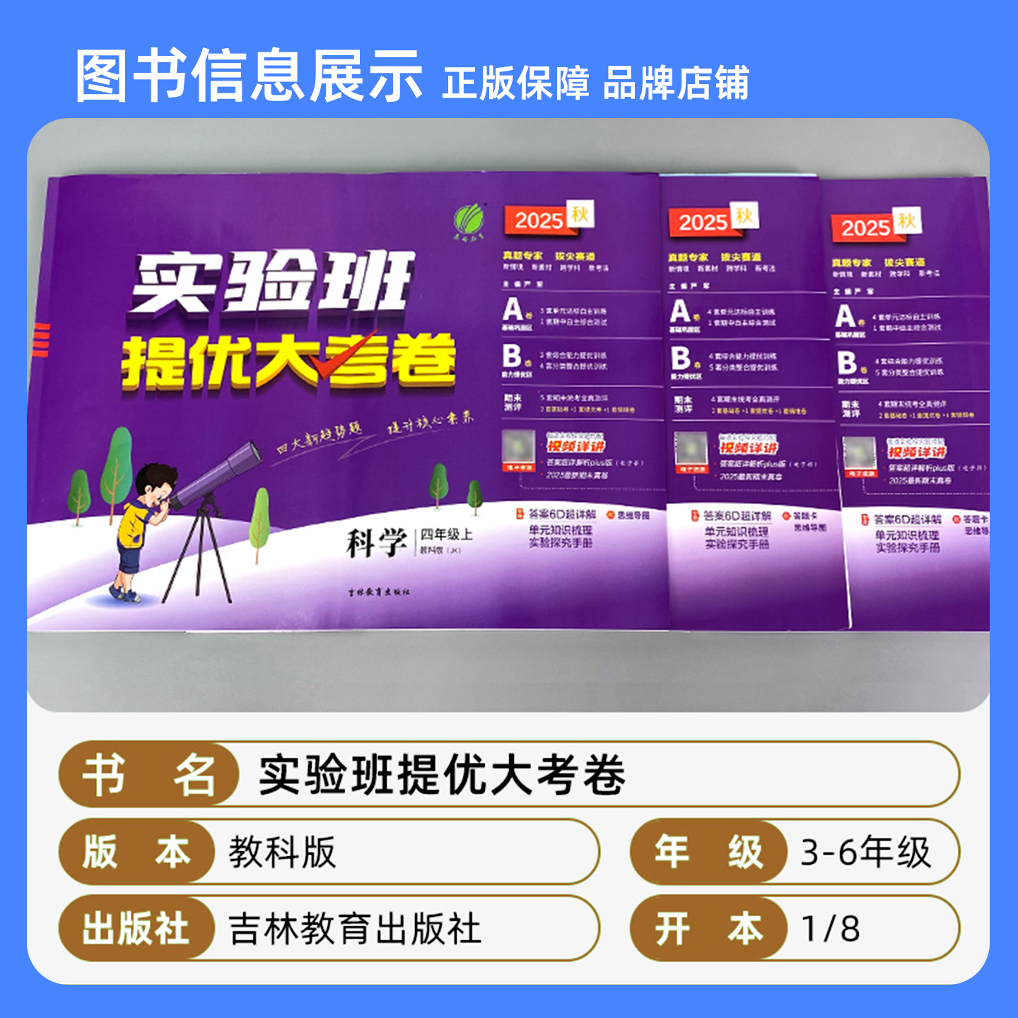 小学生教材同步训练学霸全优单元 2025秋实验班提优大考卷三四五六年级上册下册科学教科版 期末配套培优试卷测试卷全套 浙江适用