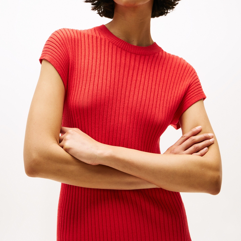 显瘦短袖 气质休闲通勤肌理感修身 长裙连衣裙 女装 Tommy25春夏新款