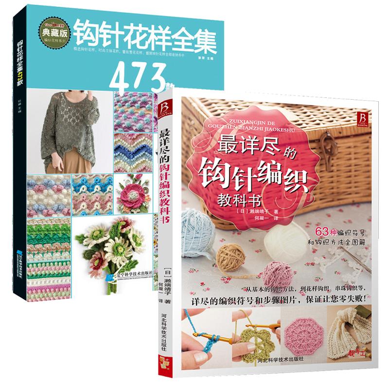 钩针编织教科书 详尽 钩针花样全集473款 立体花成人儿童毛衣钩织织毛衣教程毛籍花样钩针书籍编织手工编织书籍教程 全2册