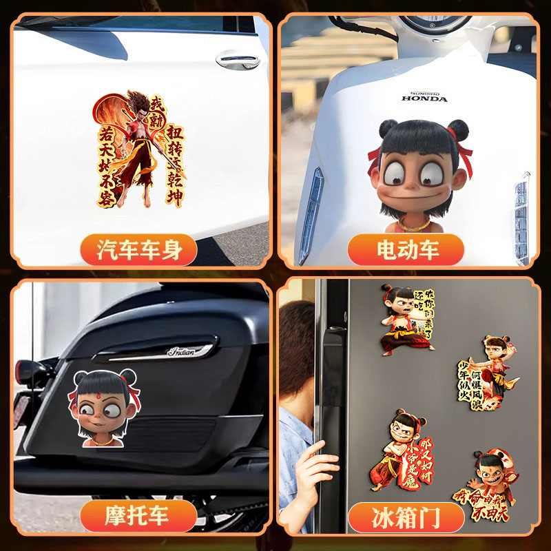 哪吒2磁吸车贴魔童闹海汽车贴纸磁性电动车划痕遮挡创意冰箱贴咤