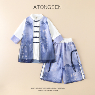 孔子古装 儿童汉服国学服装 夏新款 2024春季 男诵读演出服 马面裙套装