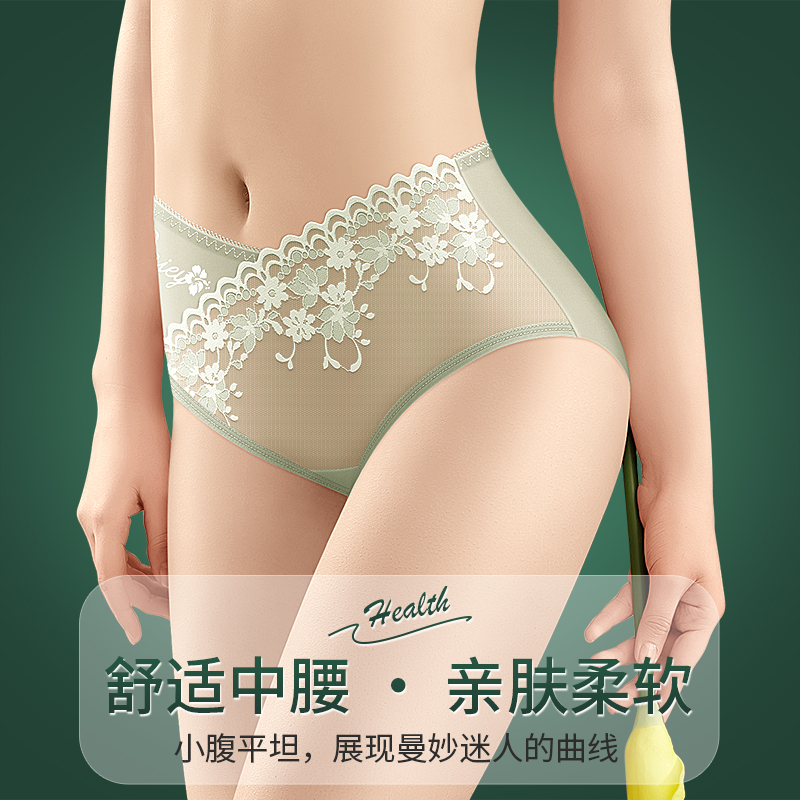 2025新款 女士中腰透气蚕丝抗菌性感蕾丝超薄款 女夏季 冰丝无痕内裤