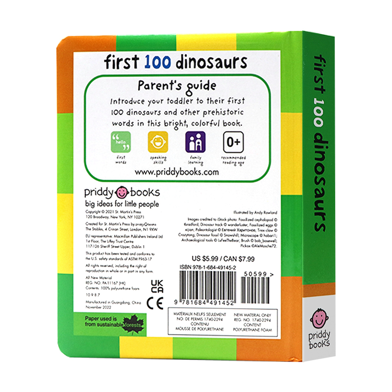 图解字词典 恐龙 100 启蒙认知100词系列 宝宝启蒙单词 priddy 绘本 启蒙读物 英文原版 books First 亲子阅读纸板书 Dinosaurs