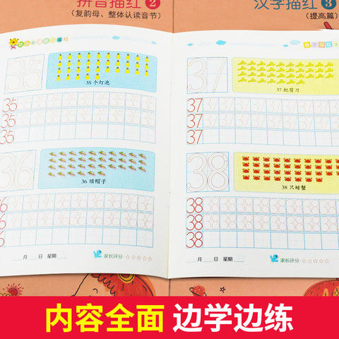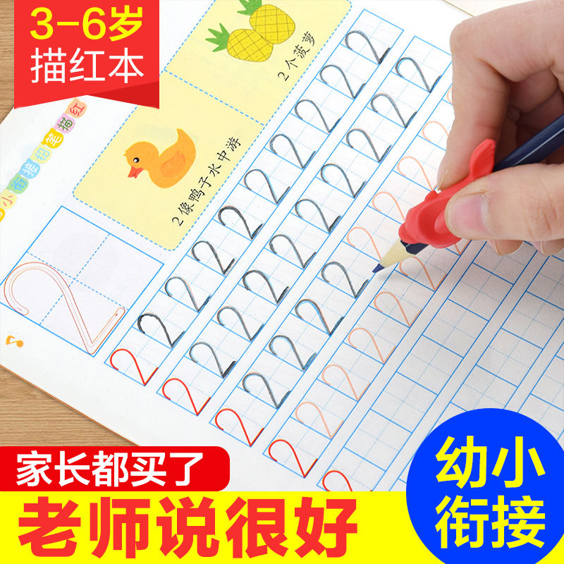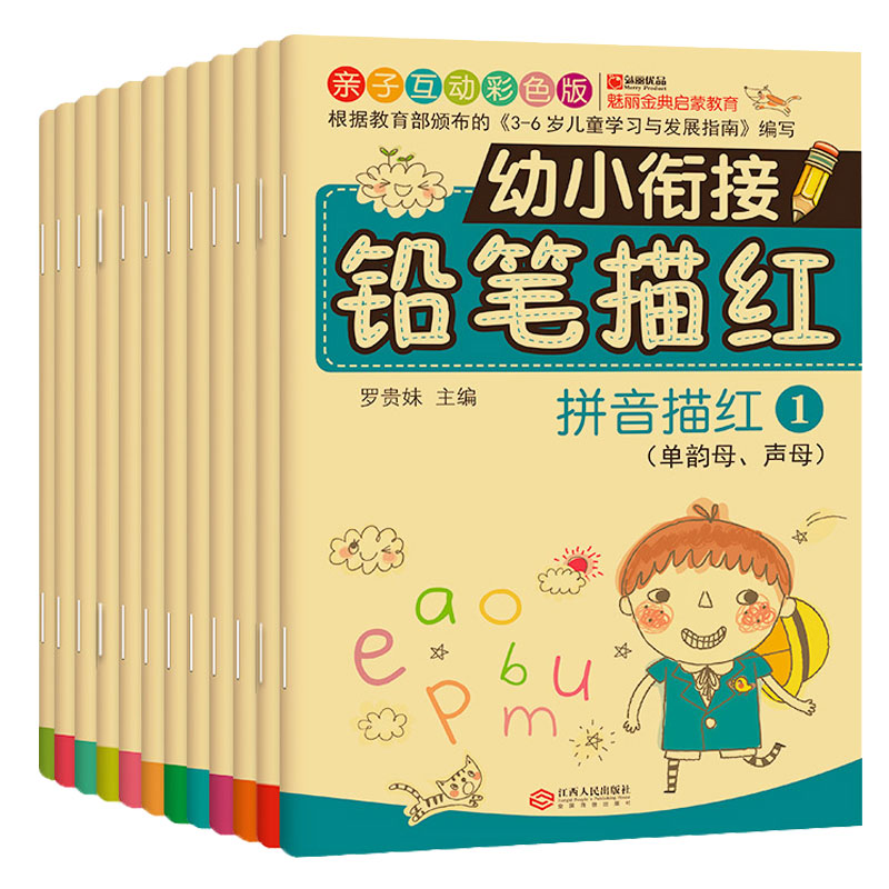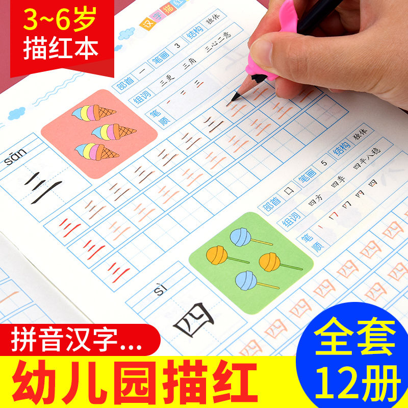 儿童幼小衔接铅笔描红全套12册幼儿园学龄前3 字帖教材 6岁拼音英语笔画练习册学前班大班幼儿偏旁部首描红练字本彩色版