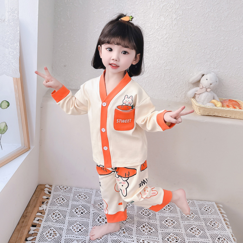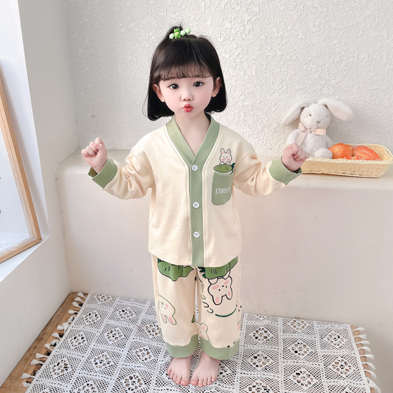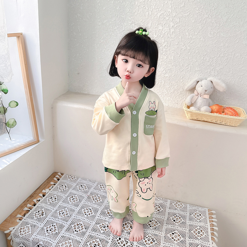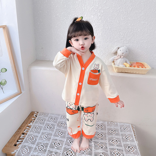 宝宝女孩家居服套装 儿童睡衣女童长袖 中小童秋冬款 纯棉春秋季 开衫