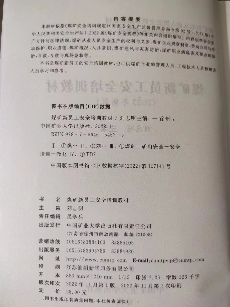 中国矿业大学出版 煤矿新员工安全培训教材 刘志明 煤矿新工人安全生产培训书籍 社 2023版