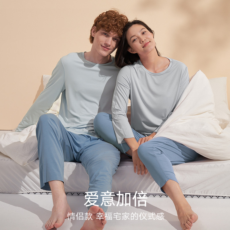 家居服 长裤 曼妮芬棉质生活莫代尔睡衣情侣套装 圆领长袖