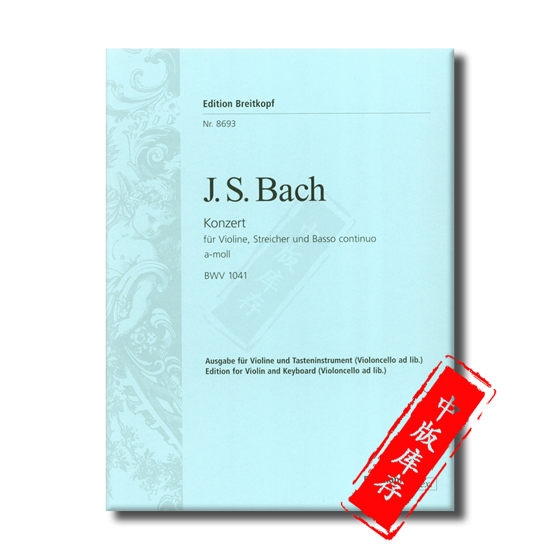 低音通奏伴奏 Bach 小提琴协奏曲 BWV1041 minor EB8693 巴赫 大熊原版 A小调 Concerto Violin 乐谱书 Keyboard