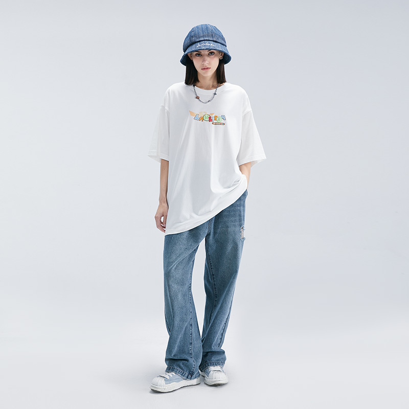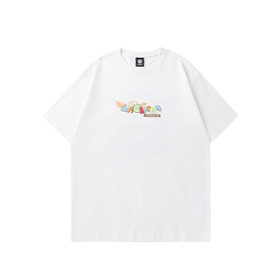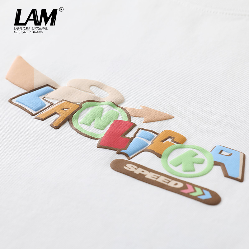 新款 ins潮夏季 青年休闲上衣 T恤男女款 LAMLICKA简约发泡字母五分袖