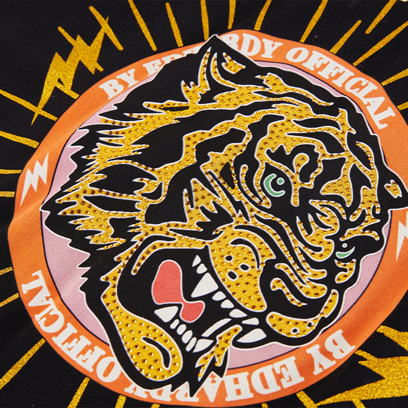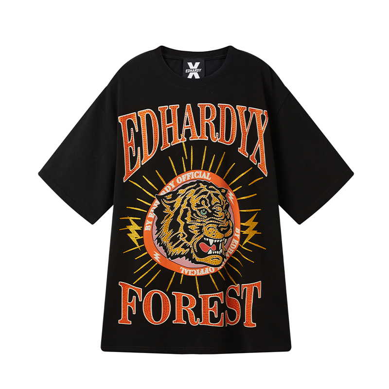 夏款 EdHardyX夏季 t恤男女同款 宽松潮流黑色短袖 虎头烫钻印花时尚