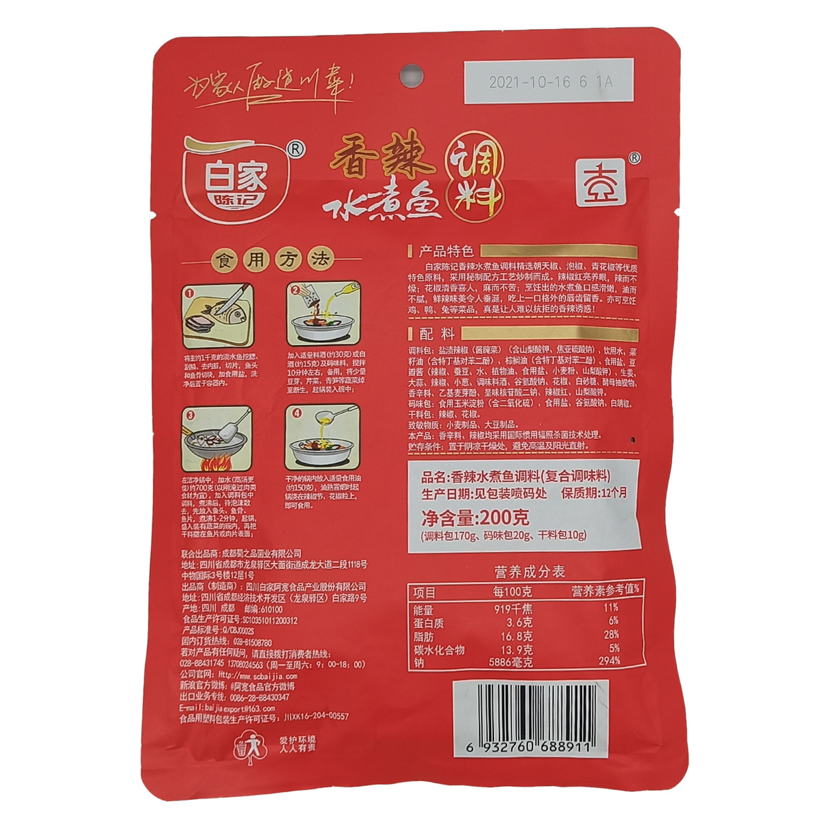好人家青花椒鱼底料210g香麻鲜辣简单大厨家用调料火锅料调味料